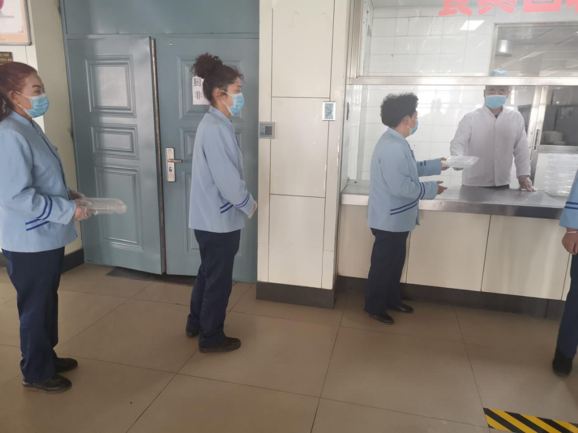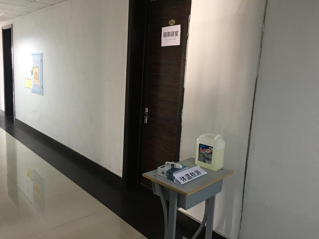 演练共分为两部分,一为学生返校食堂安全秩序过程演练。模拟学生进入食堂、门口测温、排队打餐、单人单向同桌就餐、餐具收集、离开食堂的全过程演练,在各环节保证工作人员的监督和指导,确保防控工作有序进行。此外,按照防疫要求,食堂每天进行员工测温、岗位检测,工作人员要做好防控措施,按时通风、消毒保洁等。二为学生返校出现体温异常的情况演练。模拟学生返校院系报到后入住寝室出现发热症状情境,宿管老师第一时间上报学校,经由校内卫生所询问、检查确认后,消毒紧急送往校内隔离间。发热学生送达隔离室后,由疫情防控小组宿管工作人员负责讲解隔离室管理制度,同时,对学生进行必要的心理辅导,以缓解学生恐慌情绪。