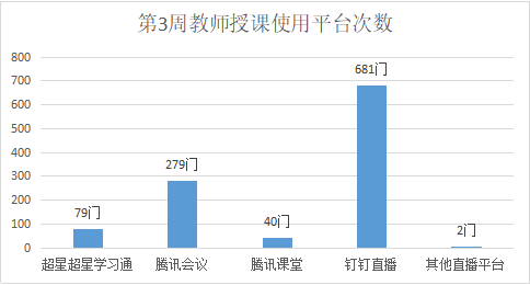 表1-3 前3周教师授课使用平台次数统计及占比情况