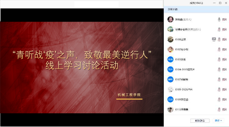 为深入学习贯彻习近平总书记勉励北京大学援鄂医疗队全体“90后”党员回信精神,伟德bv国际体育号召全校广大团员青年向战疫一线的青年榜样看齐,主动担起历史使命,从而引导学生认识时代英雄,让学生汲取成长养分和奋斗力量、传承民族精神,机械工程学院学生在聆听了王东博,孟凡莹,黄东来,殷乐四位英雄的抗疫事迹后,参加了我院开展的“青听战‘疫’之声,致敬最美逆行人”线上活动。