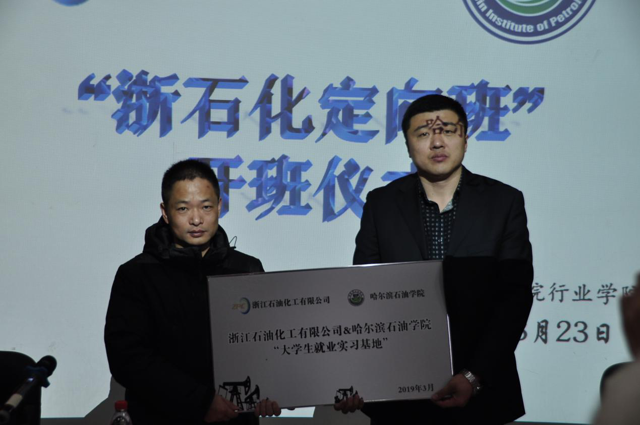 本次活动由张艳丛院长主持,介绍与会领导及嘉宾;首先,由冯校长致辞,代表校方对企业一行的到来表示欢迎,他强调伟德官网历来高度重视校企合作、创新创业,与浙江石油化工有限公司的合作,既可以为企业有针对性的人才输送,也可以更好地提高同学们的专业技能、培养实践动手能力。同时冯校长希望定向班学生认真学习、珍惜机会,将自己培养成对企业、对社会有用的人才;接下来由李经理致辞,同时介绍集团简介,分享企业文化内涵;第三,在会上,伟德bv国际体育授予企业“大学生实习就业基地”的称号,企业授予伟德bv国际体育“人才培养基地”