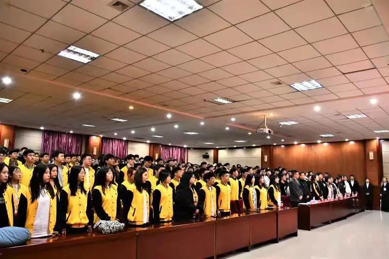 表彰大会后,伟德官网2020年下半年80名新团员进行了入团宣誓,由校团委秘书处组织部部长庄轶翔领誓,随后由老团员为全体新团员颁发团务用品,由新团员代表任思鹏,老团员代表冉重龙发言,最后校团委书记王锦石做总结讲话,他向新团员们提出两点希望:一是希望能够遵守团的章程,严守团的纪律,增强团员意识,树立远大理想,二是希望把学习作为首要任务,作为一种责任、一种精神追求、一种生活方式。活动在全体共唱团歌中落幕。