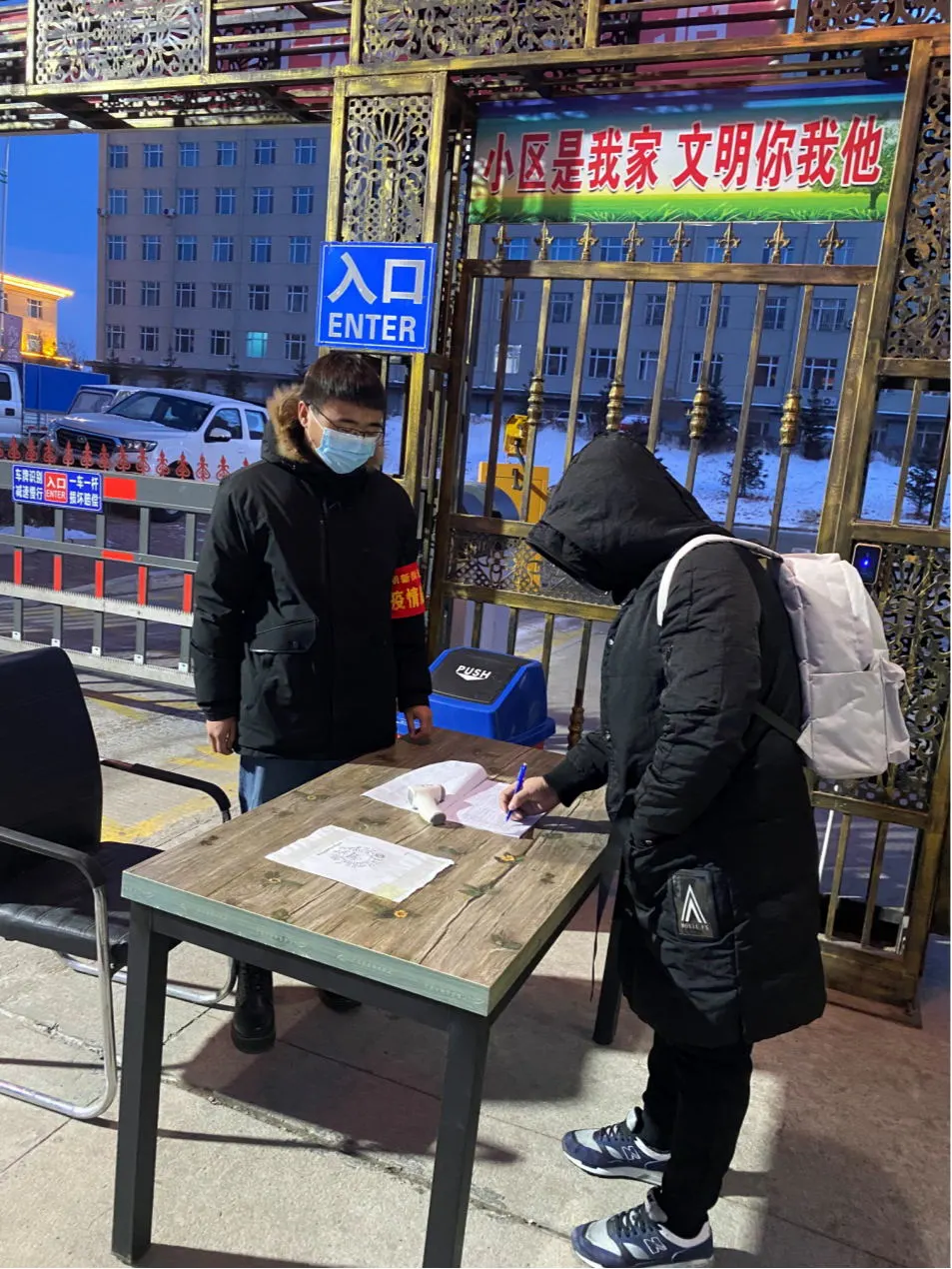 1月11日,疫情防控志愿者王贵棋正式上岗。此后的每一天,王贵棋都同工作人员一起在小区入口的门卫室站岗,对小区居民宣传疫情防控知识。而在这个过程中他也从那些与自己一同奋战在抗疫的工作人员身上汲取到满满的正能量,以饱满的精神面貌投身到工作中去。王贵棋说:“每当有小区居民不理解、不支持防控工作时,各单位工作人员都会以极大的耐心晓之以情、动之以理,用自己的真诚换来小区居民的理解。这样的工作作风为他树立了榜样,同时他说道:“我是学生干部,重返校园后,我也要进一步提升自己的工作作风,更好地为老师、同学们做好服务工作。”