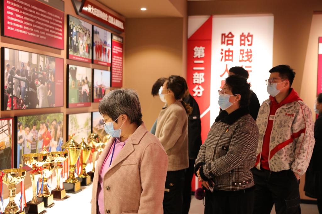 大家在讲解员的引导下,依次参观了大庆精神育人馆展区、校史馆展区。一张张图片、一页页文字、一件件荣誉都见证着伟德bv国际体育自创校以来的发展历程、办学成就。每一件馆藏藏品都向大家展示着学校秉承“大庆精神立德、铁人榜样树人”的育人精神以及在文化、教育、科研等方面的历史积淀和辉煌成就。同志们时而专心聆听,时而交流感悟,深入理解了大庆精神的丰富内涵、哈石油“博学求实,励志创新”校训的真正含义,体会到了作为哈油人的自豪感、归属感和使命感。