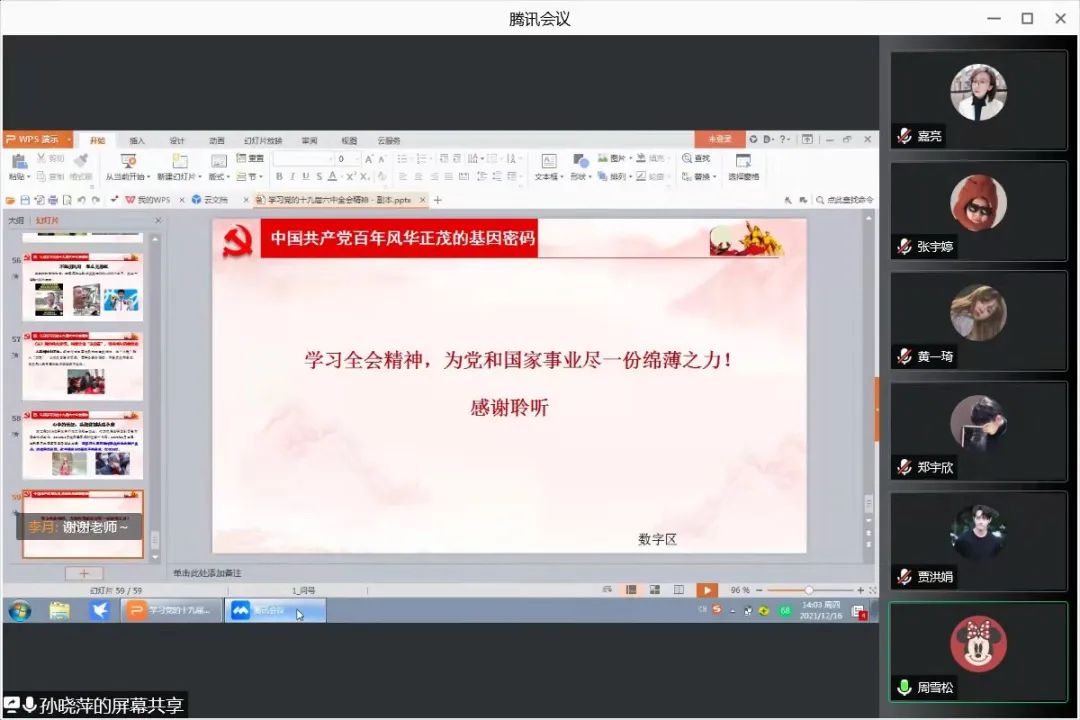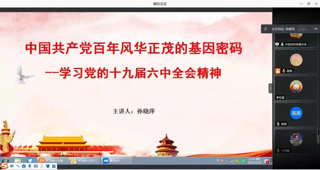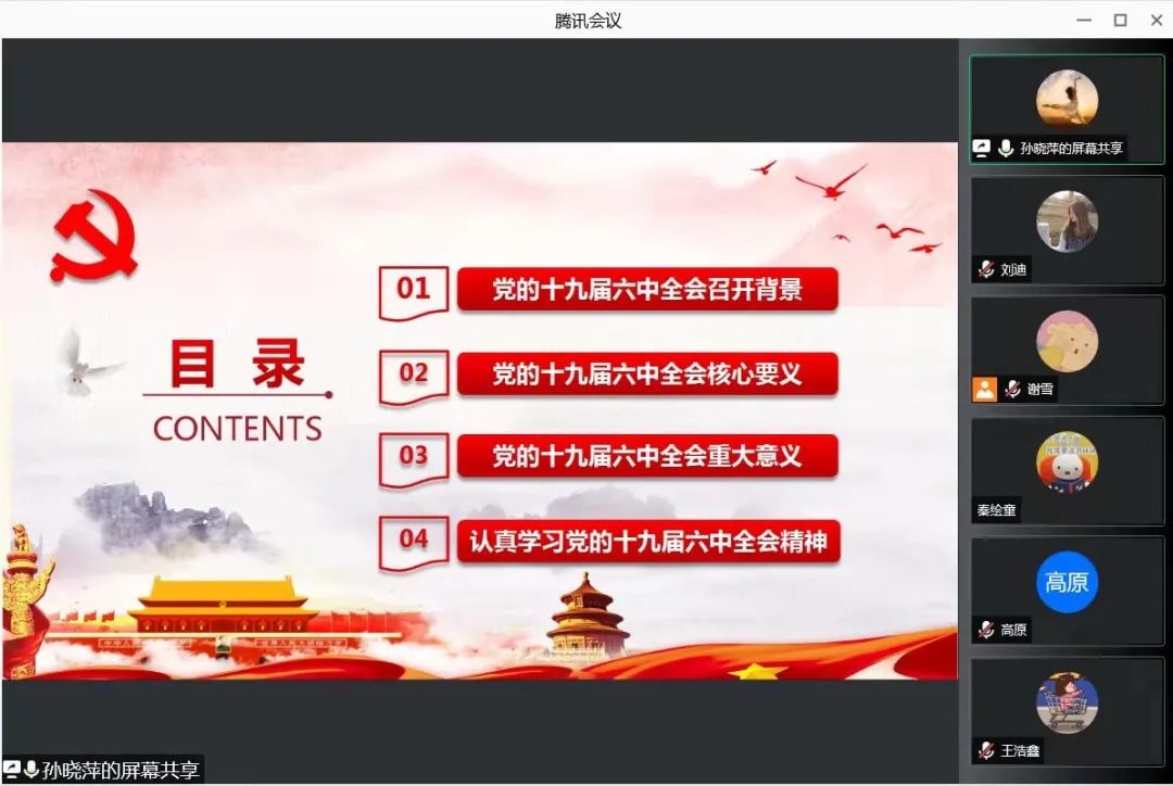 为扎实深入学习领会党的十九届六中全会精神,深刻认识党的百年奋斗成就和历史经验,推进学习宣传贯彻工作,学前教育学院根据《伟德bv国际体育党的十九届六中全会精神学习宣讲方案》精神,于12月16日开展十九届六中全会精神学习宣讲活动。此次宣讲由外国语学院党总支副书记孙晓萍主讲,学前教育学院全体党员参加此次宣讲活动。