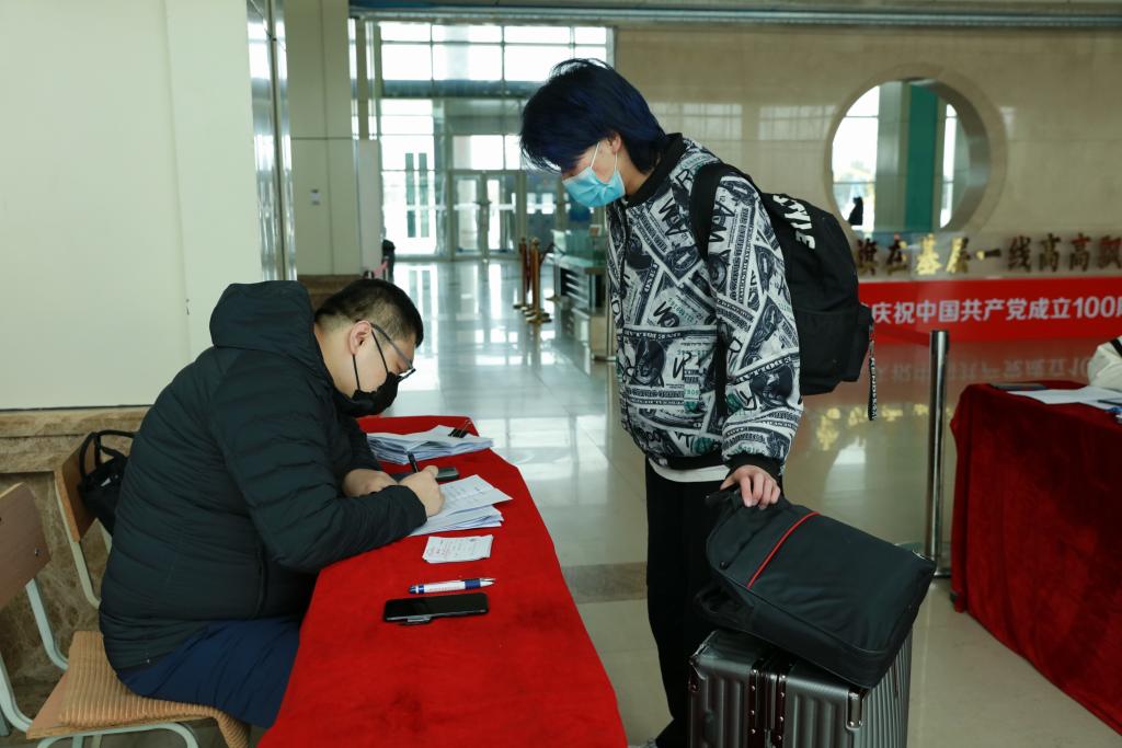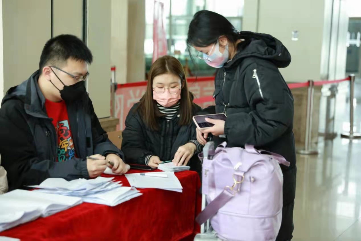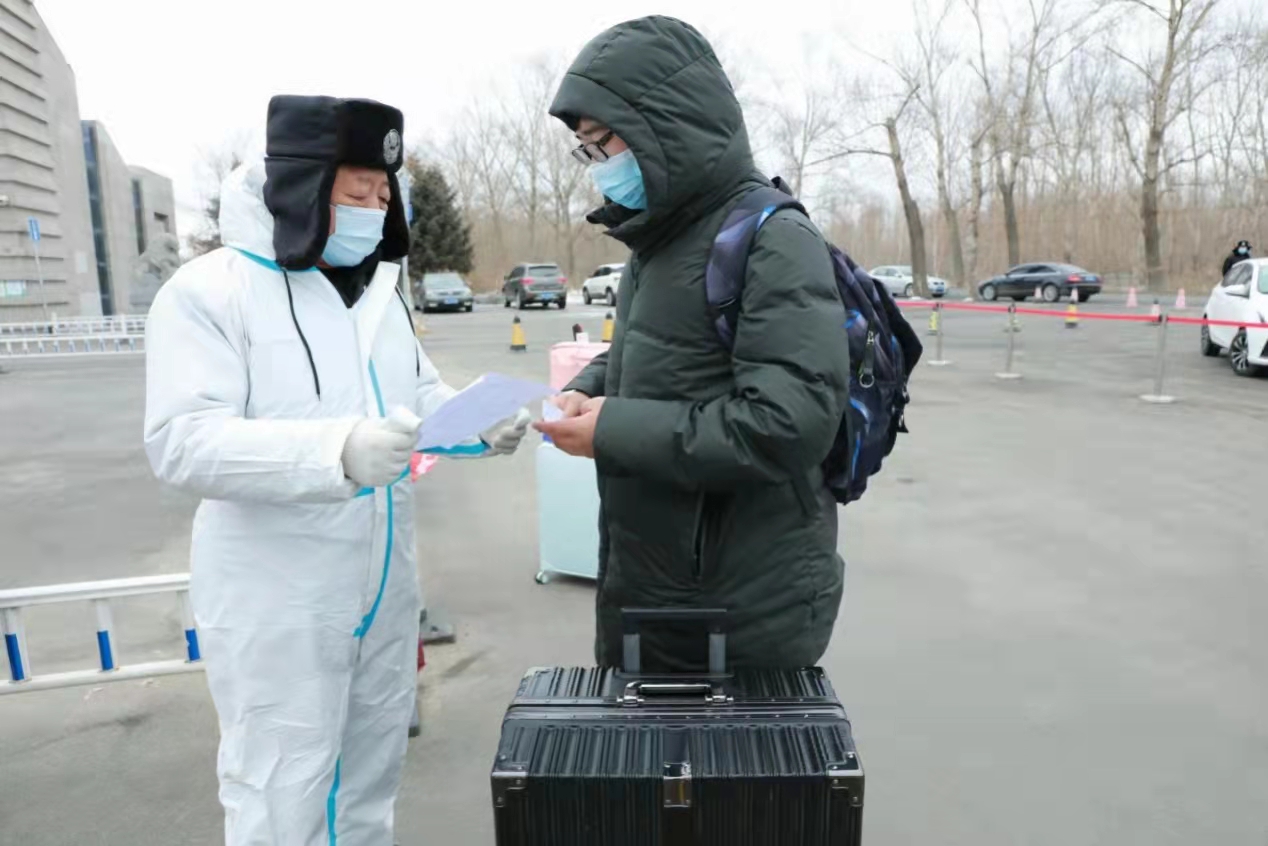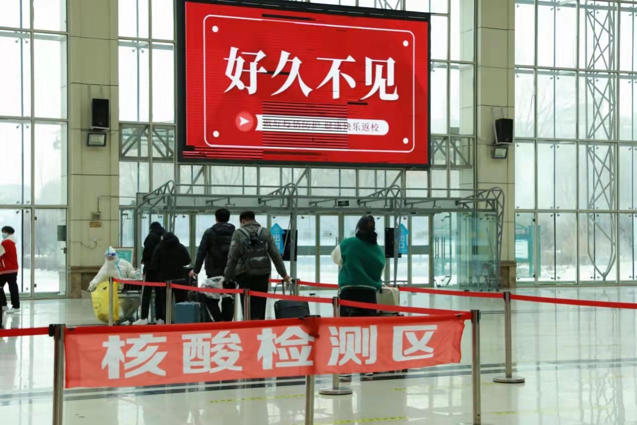 5日清晨,学生工作处、保卫处、后勤处、各二级学院等部门人员早早在学校南门、阳光大厅、学生公寓等地做好准备,学生们到校后每人间隔1.5米通过入检通道,严格执行出示“三码一证明”、测温、点对点入校、核酸检测等环节,保障返校学生平安健康。