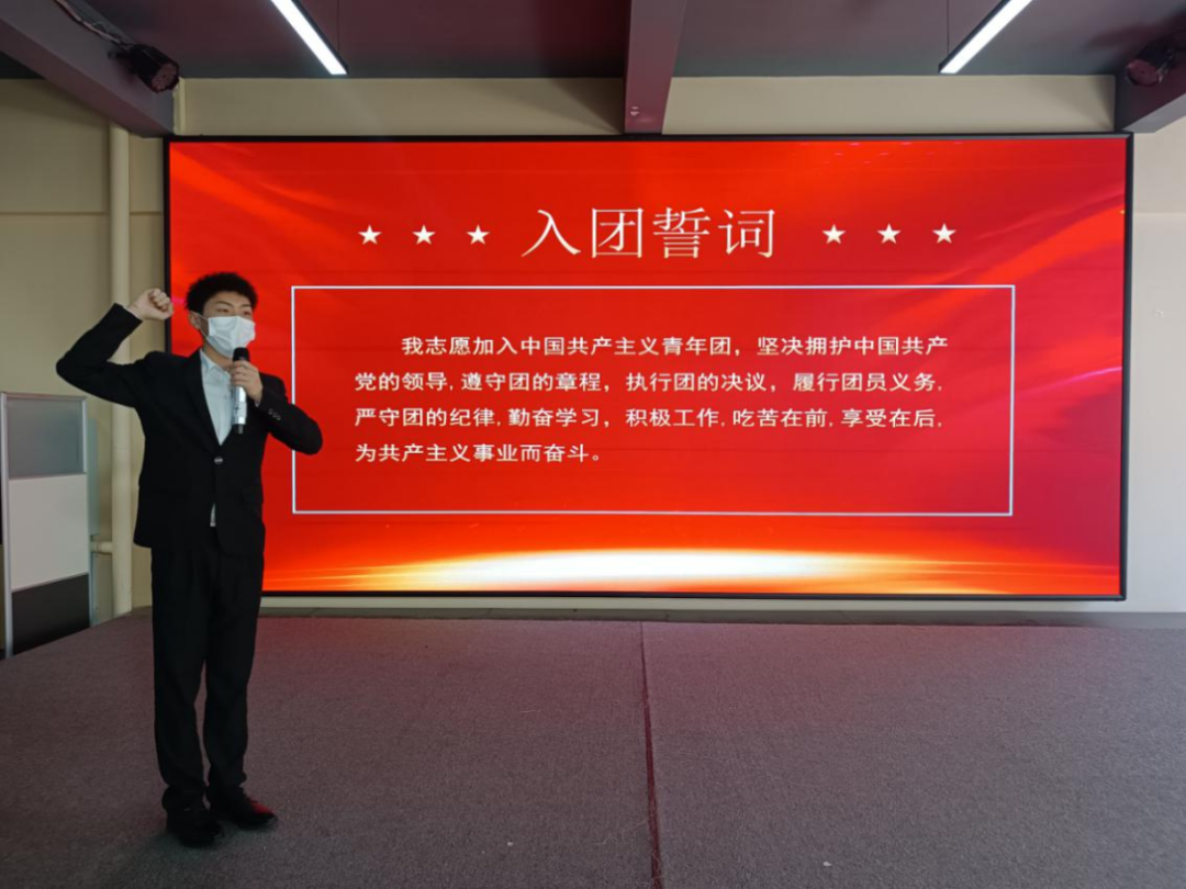 学生干部代表李想带领全体学生重温入团誓词领誓