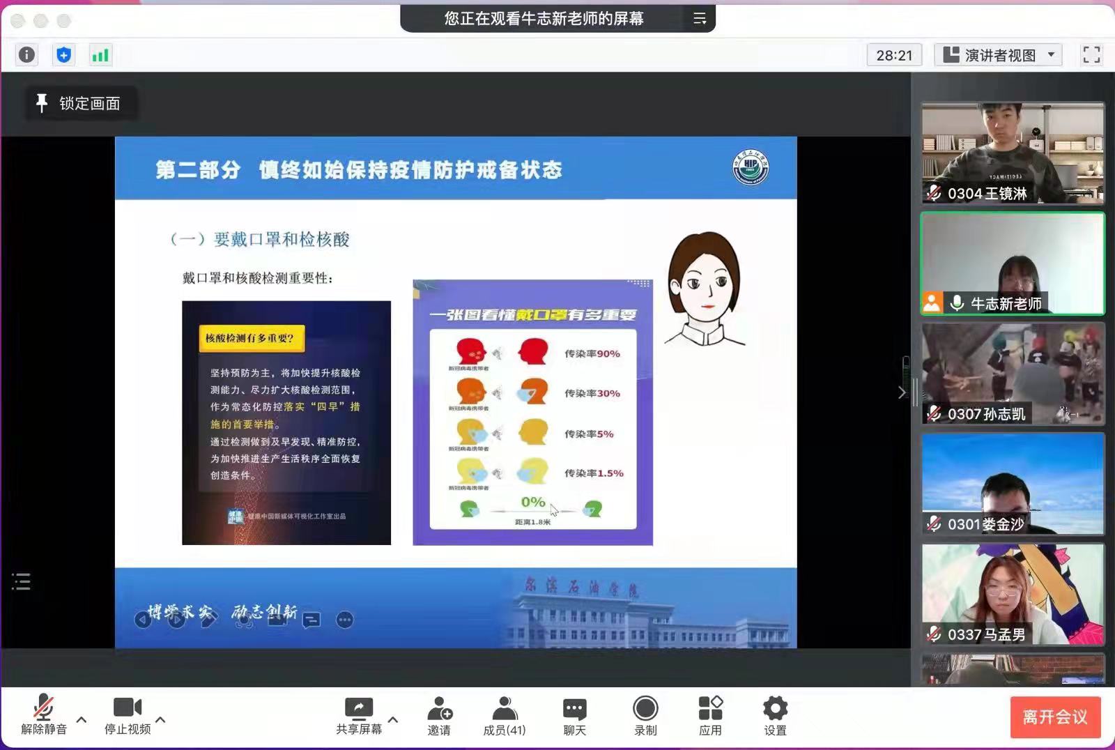 伟德bv国际体育的师生员工通过主动参与讲课和听课,做到政治站位再提高,防控举措再严格,思想工作再深入。大家纷纷表示,听了这堂“防疫大课”,在进一步了解防疫知识的同时提高了思想认识,更加理解了学校制定的各项防疫政策和工作要求,使全体师生员工有了从“要我防疫”到“我要防疫”的意识转变。郑重表态一定会全力支持和积极配合学校的各项防疫工作要求,做校园战“疫”的践行者、参与者、维护者,做好个人防控和学校的各项防控工作,坚决打赢这场校园疫情防控阻击战!