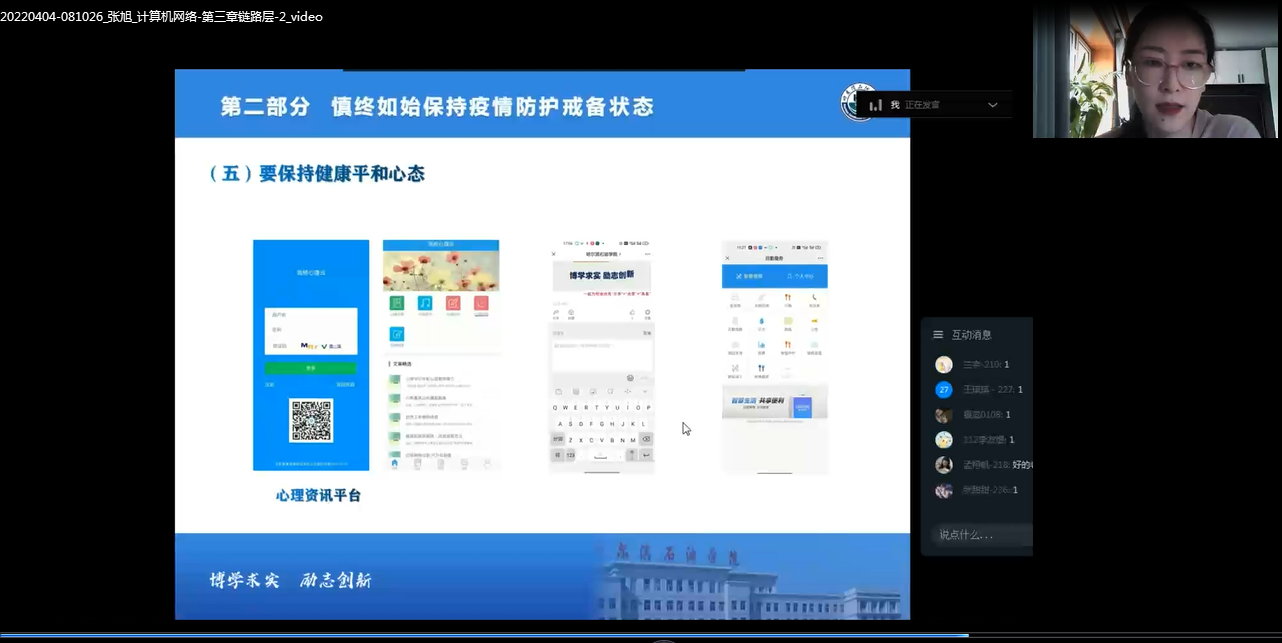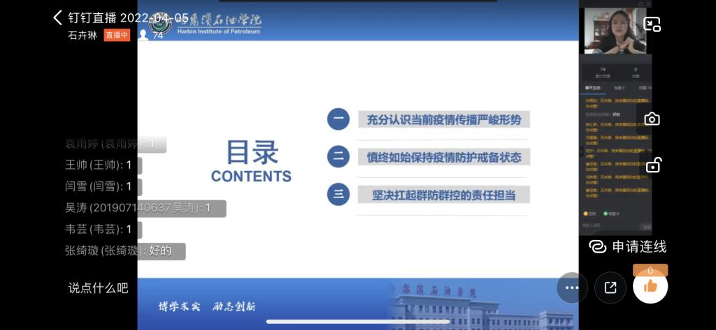 为深入贯彻4月2日,黑龙江省副省长、省应对新冠肺炎疫情工作领导小组指挥部副总指挥孙东生在全省高校疫情防控视频调度会上的讲话要求,落实省教育厅防疫指挥部的文件精神,伟德bv国际体育于4月4日至5日,组织全校师生员工开展“百名教师同讲、千名职工万名学生共上一节防疫课”的防疫主题教育活动。由学校层面起草基础讲稿,校领导、人事处处长、各学院院长和教师利用教学授课前的统一时间,根据管理范围,对全体教师、学生,校内商服网点从业者、校内保洁、后勤工作者等进行全覆盖式的防疫教育。