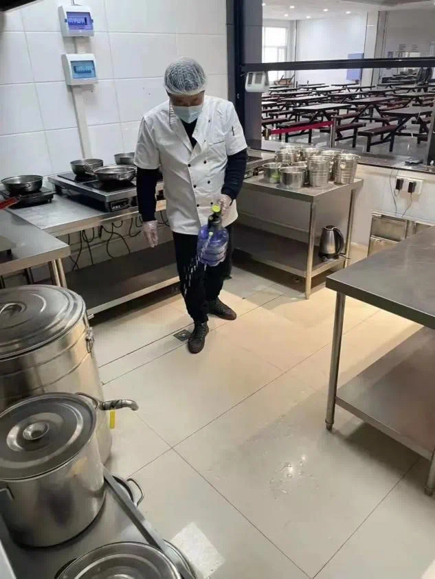 后勤处自3月中旬开始要求全部人员住校,实行封闭管理。为了保障校内安全,后勤近400名员工分别在店内、行政楼搭起了临时寝室,放弃了照顾家中老小。一切的一切,都是为了保障师生“舌尖上的安全”。