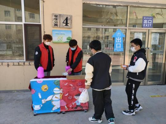 本轮疫情发生以来,机械工程学院志愿者协会闻令而动,迅速集结,在校志愿者纷纷主动向学院党总支请缨,加入学校疫情防控行列。3月30日,他们迎来了第一份工作——为公寓楼及快递站进行消杀工作。志愿者们接到任务后,立即展开工作,首先在学生公寓及快递站门前设立志愿服务先锋岗,设置防疫宣传咨询台、戴口罩宣传展板、快递站前消杀注意事项等内容。随后派专人进行细致入微的消杀工作,同时还两两结对提醒过往同学做好防护,向大家普及防疫知识。志愿者们用小小的喷壶装载希望,防御病毒,有条不紊的工作进程让学校的防控工作如虎添翼。