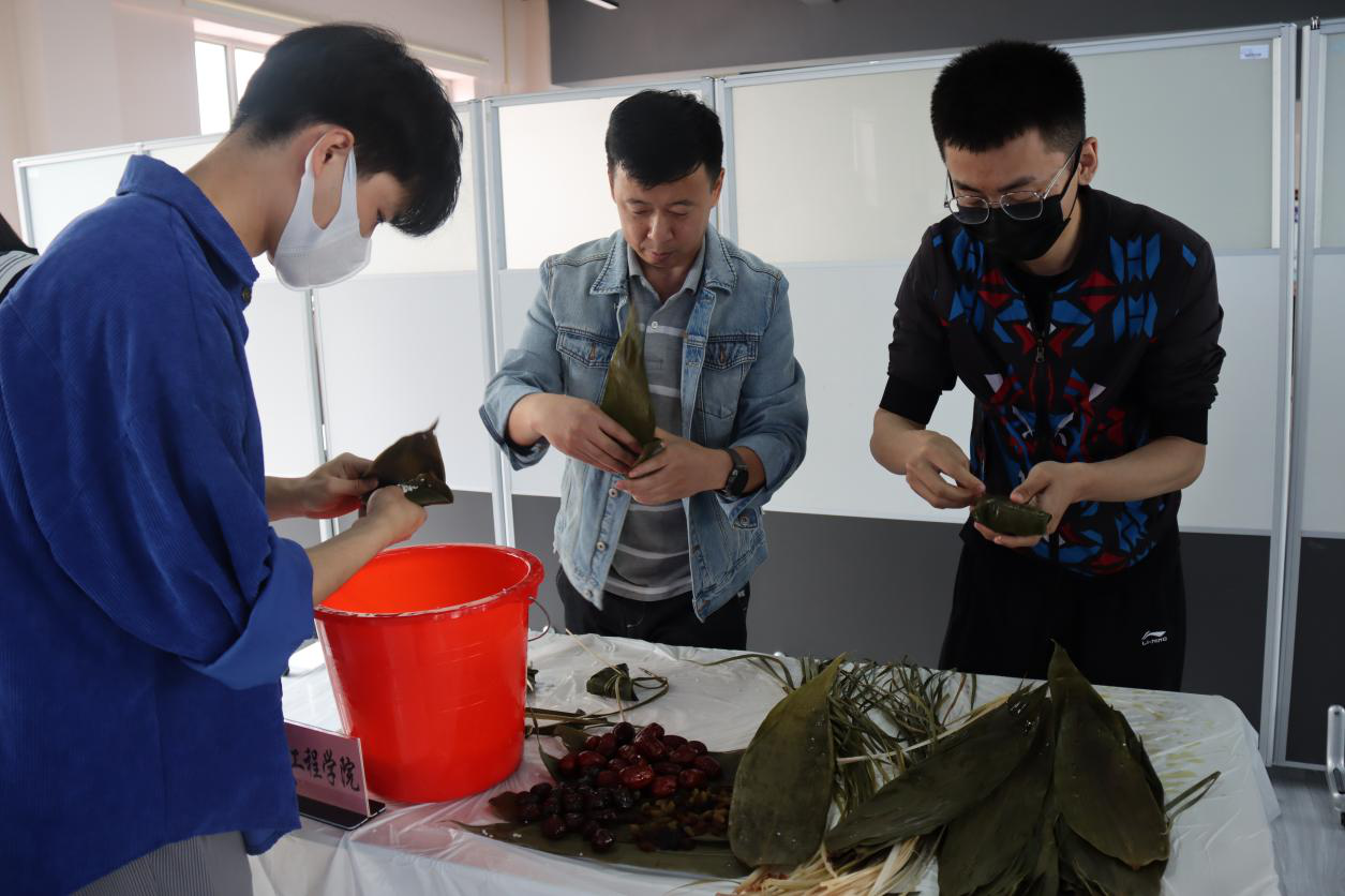 活动的第一环节为包粽子比赛,党委书记林立民宣布比赛开始后,由九个二级学院和学工、团委联队共同组织的十支参赛队伍开始紧张刺激的比赛,比赛过程中大家热情高涨,加油声不断,短短15分钟的时间,合计完成472个粽子,成绩喜人。