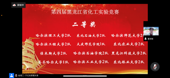 2022年6月18-19日,由黑龙江省化工学会主办,哈尔滨理工大学承办,黑龙江省教育厅高教处、黑龙江省普通高等学校创新创业教育指导委员会支持举办的第四届黑龙江省化工实验竞赛在线上举行,省内哈尔滨工业大学、哈尔滨工程大学、伟德bv国际体育等14所高校共计26支队伍参加比赛。我院选派两支队伍参赛,其中孙渤淳、张梓淅、李小研组成的伟德bv国际体育1队荣获特等奖,晋级东北赛区,继续向全国总决赛进军。另一支由殷守棋、白如玉、陈怡秋组成的伟德bv国际体育2队获得了二等奖。