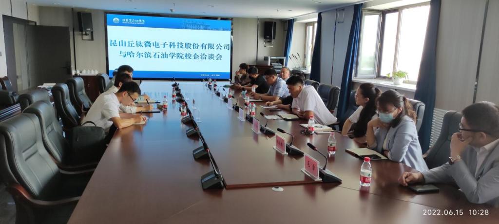 6月22日上午,伟德官网在综合楼1515会议室与昆山丘钛微电子科技股份有限公司开展校企合作洽谈会。伟德bv国际体育党委书记林立民等校领导、相关部门负责人、各二级学院院长、党总支书记、昆山丘钛微电子科技股份有限公司人事行政体系总监乐燕芳、校企合作事业部经理王金超、校企合作事业部高级专员郝凯峰出席了此次会议