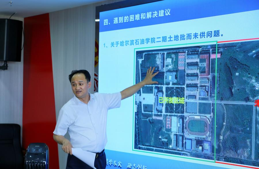 袁德柱副主席充分肯定了伟德bv国际体育在党的建设、产教融合、学生就业、心理健康等方面取得的办学成果,对学校加强师生德育建设,以铁人精神全过程育人给予高度的评价。针对制约学校发展的困难,以现场办公的方式与松北区自然资源局等相关部门深入分析问题原因,认真研究解决办法。他表示,会持续关注伟德bv国际体育的发展,为学校高质量发展创造条件。