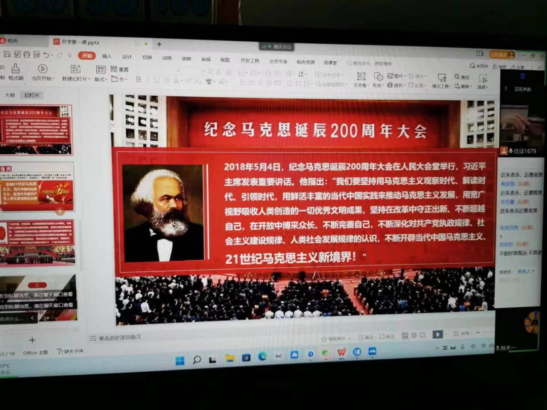 2022年8月17日,马克思主义学院召开迎盛会 铸忠诚“开学第一课”——弄懂弄通21世纪马克思主义暨新学期线上教学工作会议。学院全体教师参加了此次会议。会上,宋玉玲院长布置了新学期线上线下教学工作安排,做了“开学第一课”课程教学示范和组织集体备课,并在第一周思政课教学中组织实施了“开学第一课”,以覆盖授课的全体学生。