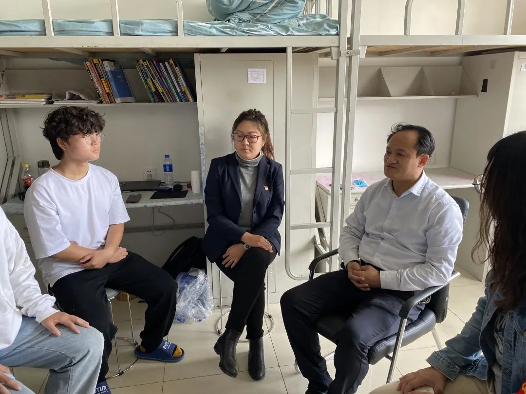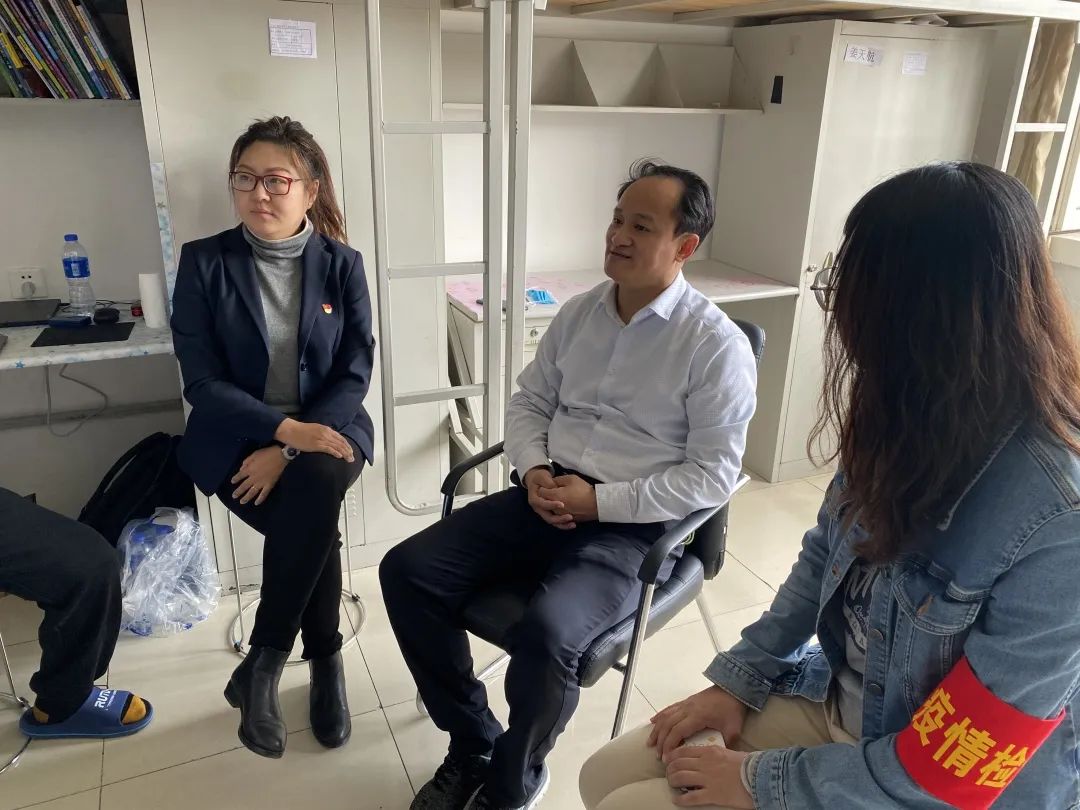在走访过程中,林立民书记对学院新生报到人数、学生宿舍防疫物资配备、学校静默管理的适应情况等进行了详细了解。林书记仔细询问了新同学对大学的感受,了解学生目前在校的学习生活情况、未来的规划等。他提示大家要加强防护,规范作息、做好自身健康管理。