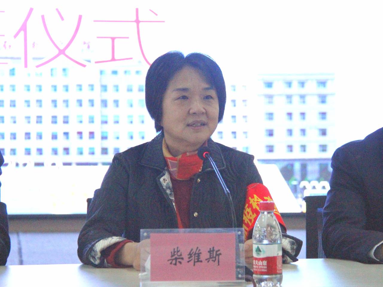 仪式开始,校长柴维斯致词。她表示,学校事业发展迅速,求贤若渴,代表学校欢迎新教师的加入。她结合2021年全国教育事业发展统计公报的数据,跟新教师分享了高等教育的基本情况,让教师明确了自己的使命和荣誉。希望新教师坚守“择一业、成一事、终一生”的人生信条,在三尺讲台上书写着无悔人生,在平凡的工作岗位上创造出了不平凡的成就。