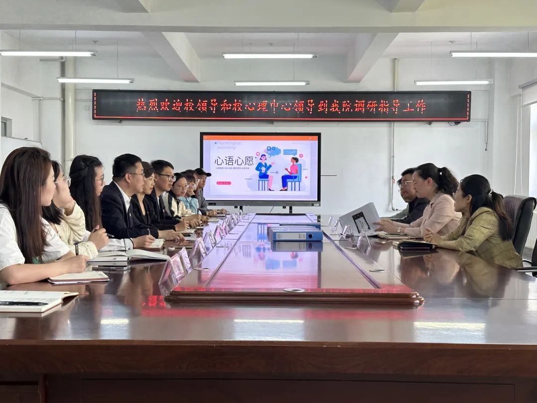 调研过程中,党委副书记、副校长冯研,校长助理、学生工作处宁晶对于各学院的心理工作给予了充分肯定。冯研强调,各学院要认真落实国家社会心理健康服务体系建设有关文件要求,针对学生心理健康工作,展开多方沟通合作,明确工作流程,齐心协力促进学生健康成长,扎实推进心理健康教育达标建设。切实把二级站建设成心理健康教育教学、科学研究、咨询服务、危机干预、工作交流和师资培训六为一体的二级辅导站,为师生身心健康保驾护航。