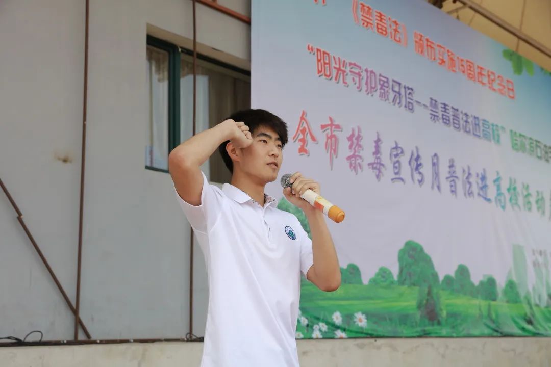 党委书记林立民代表校方发言。他表示:学校一直以来都十分重视禁毒宣传教育工作,始终坚持把禁毒宣传教育纳入学校的思想政治教育工作之中,通过定期开展主题班会、成立禁毒防艾社团等方式对学生进行禁毒宣传教育;始终坚持把禁毒宣传教育与学生日常行为规范教育相结合,与学校法制教育和培育学生社会主义核心价值观相结合,做到毒品预防教育工作常抓不懈。他强调下一步学校会继续加强领导,落实责任,进一步推动禁毒宣传教育工作的有序开展,紧紧依托全校师生,群策群力、坚持不懈、扎扎实实地落实好各项禁毒宣传工作,使学校的禁毒工作不断取得新成效、新进展和新突破!