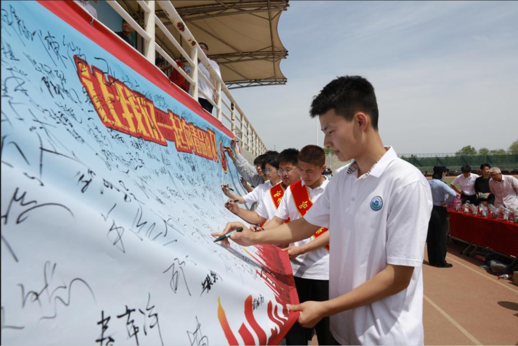 (学生到签名墙签名)