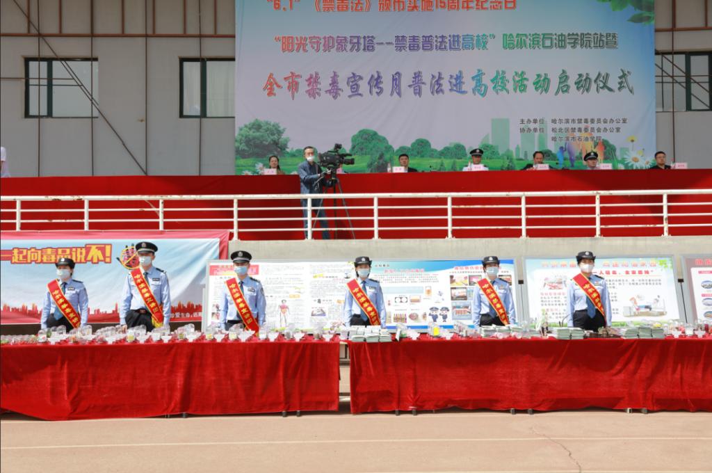 5月31日上午,“6.1”《禁毒法》颁布实施15周年纪念日“阳光守护象牙塔 禁毒普法进高校”暨全市禁毒宣传月普法进高校活动启动仪式在伟德官网成功举行。市公安局禁毒支队政委陶向荣,禁毒支队副支队长赵伟峰,松北区禁毒办主任陈国军,伟德官网党委书记林立民,党委副书记、副校长冯研,校长助理康平军,校长助理宁晶出席活动,伟德官网共1000多名学生参加活动。