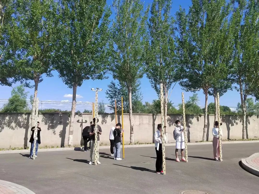 比赛开始后,各参赛小组成员立即投入紧张的比赛氛围中。各组参赛的同学分工明确,负责观测的同学认真观测、读数,记录员认真记录数据,扶尺同学时刻保证双面尺处于竖直状态,每一位同学相互配合,团结协作。