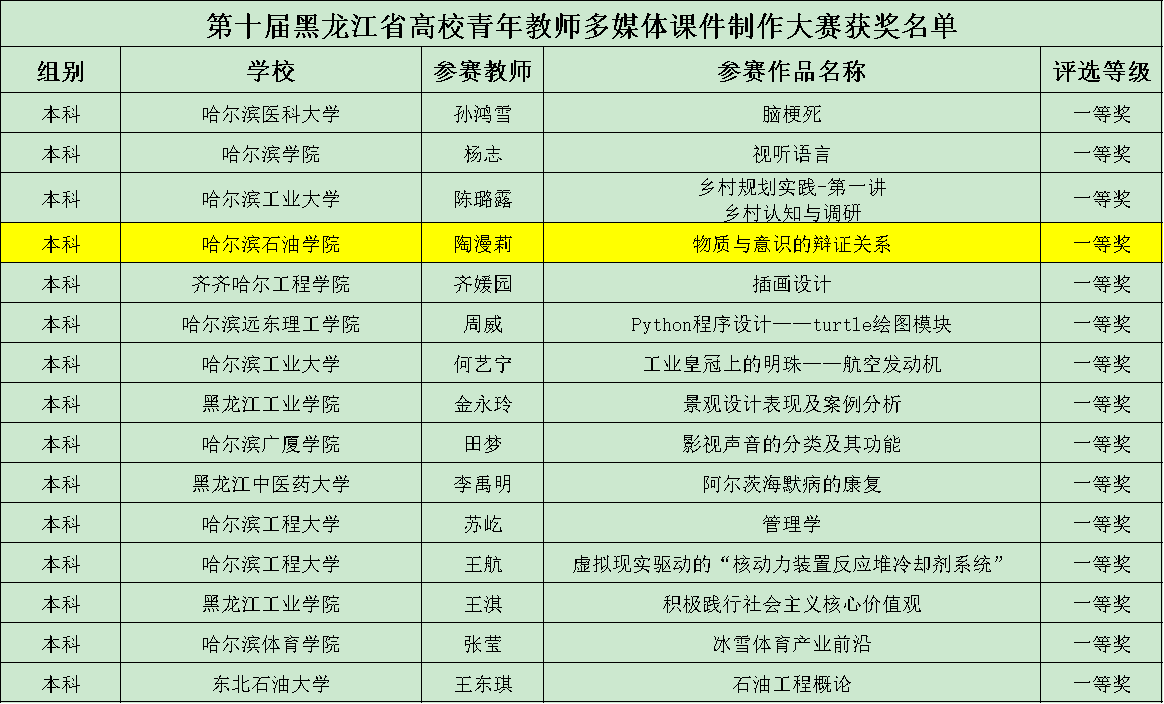 近日,由黑龙江省高校师资培训中心、教育部全国高校教师网络培训黑龙江省分中心联合举办的“第十届黑龙江省高校教师多媒体课件制作大赛”落下帷幕。经过一系列严格的专家组评审,伟德官网马克思主义学院陶漫莉老师荣获本科组一等奖。