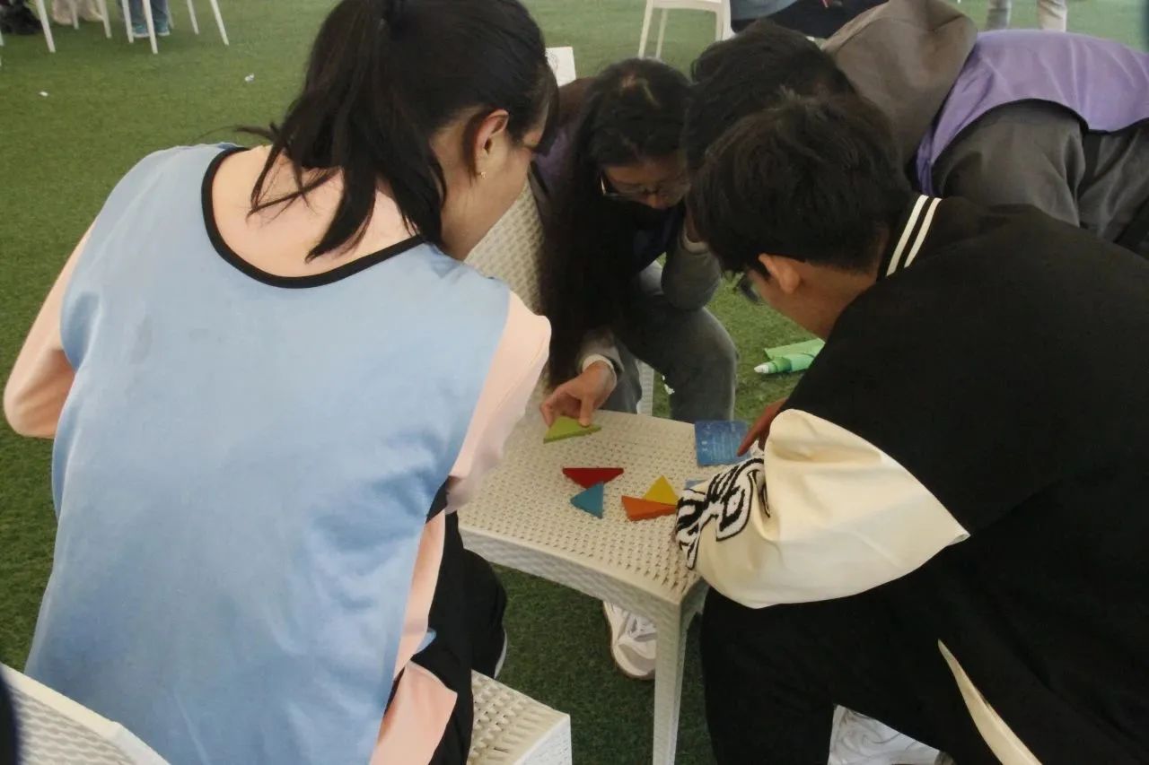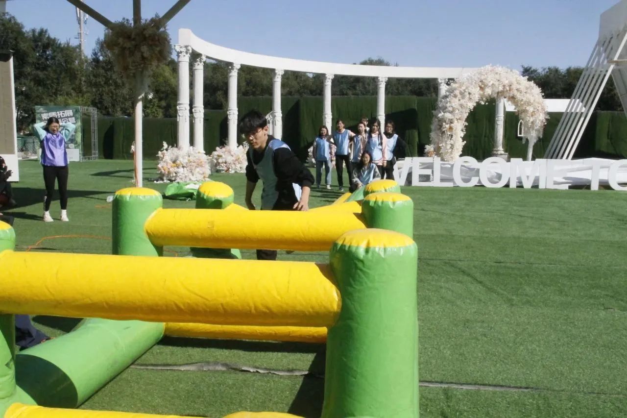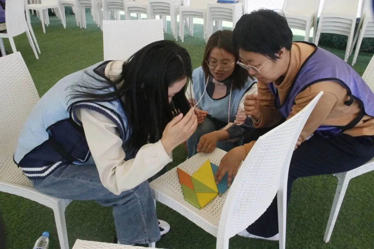 活动中,新教工积极参与,全情投入,在完成了破冰热身活动后,教师们被分为2组,在队长的带领下分别为自己的队伍设计队名、队旗,拉开了拓展训练的序幕。实践活动包含团队风采展示、毛毛虫竞赛、超级障碍、团队七巧板等多个团队拓展项目,队员们迅速进入状态,大家创新思维、有效合作,完成了各项任务。