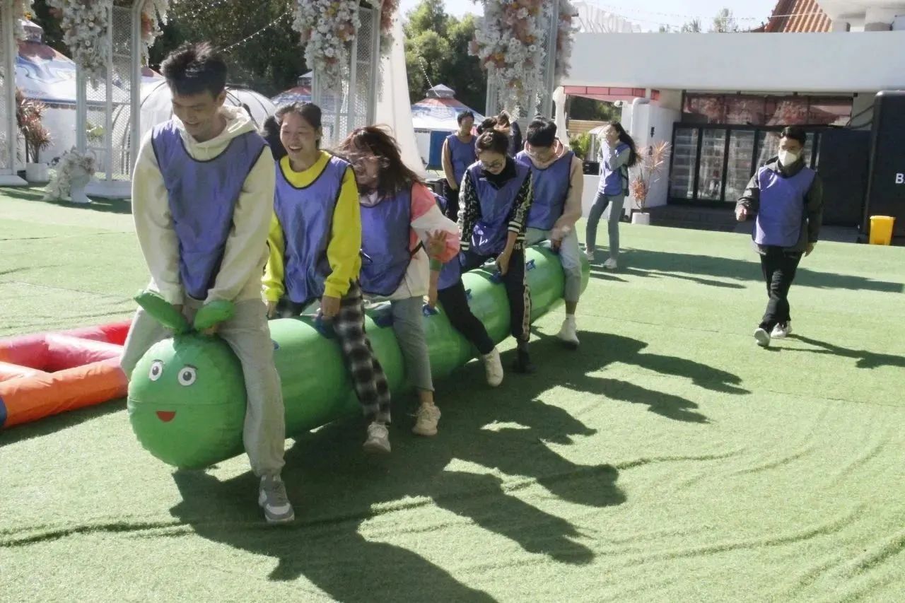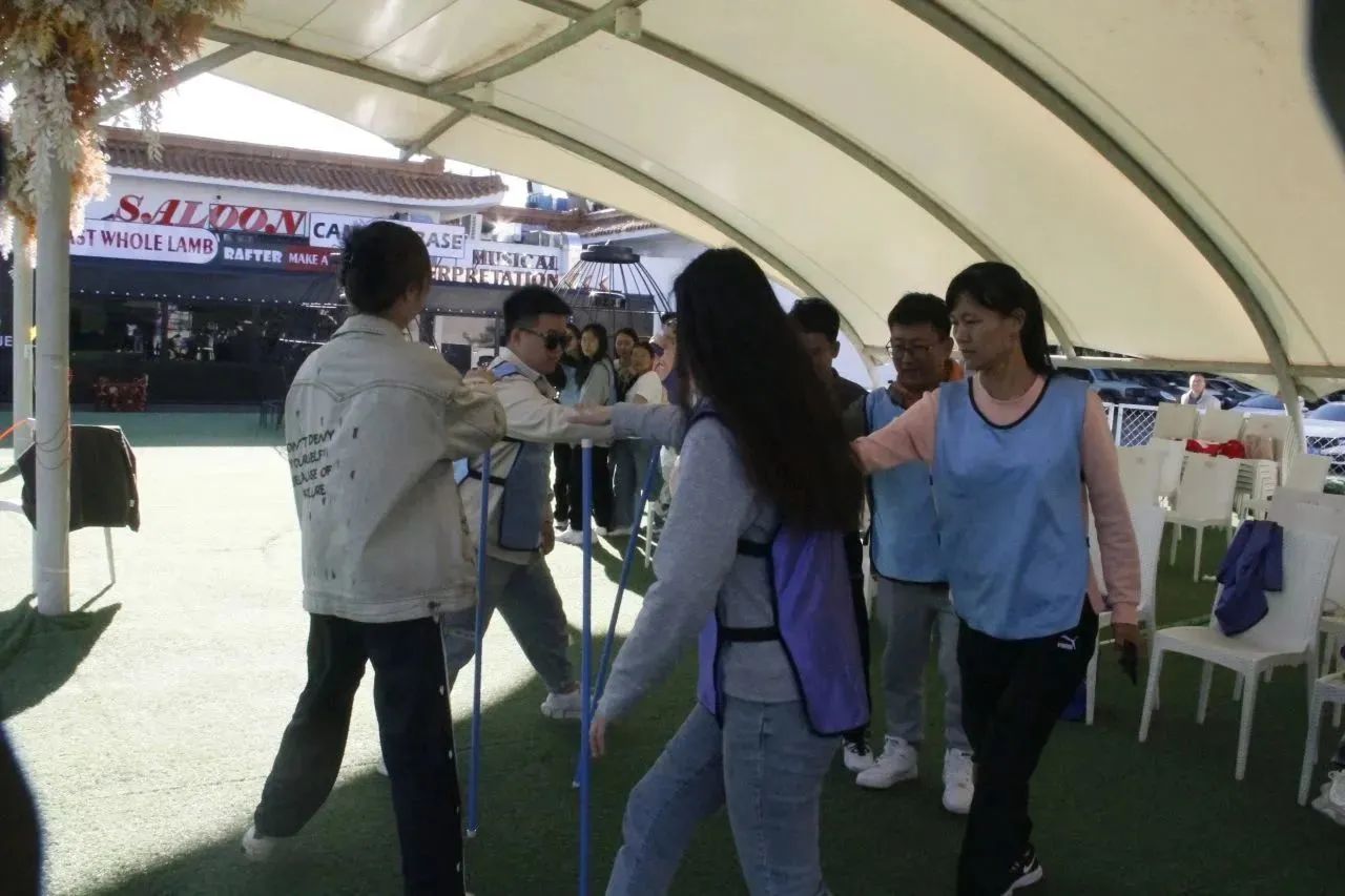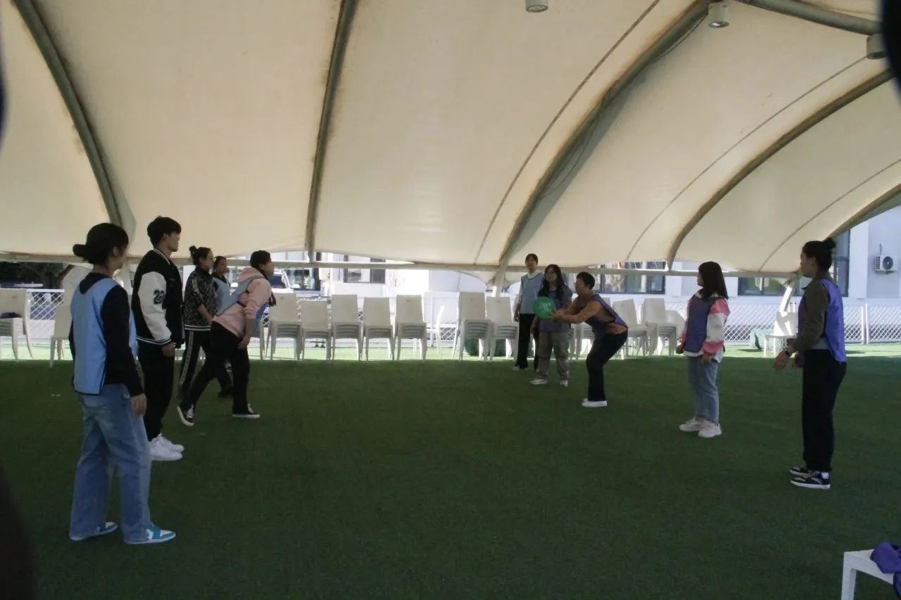 活动中,新教工积极参与,全情投入,在完成了破冰热身活动后,教师们被分为2组,在队长的带领下分别为自己的队伍设计队名、队旗,拉开了拓展训练的序幕。实践活动包含团队风采展示、毛毛虫竞赛、超级障碍、团队七巧板等多个团队拓展项目,队员们迅速进入状态,大家创新思维、有效合作,完成了各项任务。