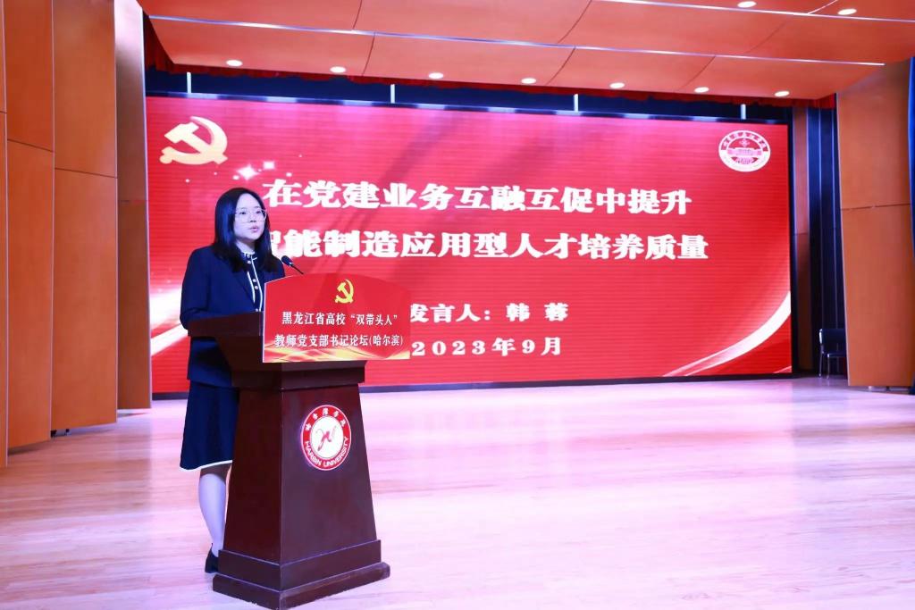 2023年9月27日,黑龙江省高校“双带头人”教师党支部书记论坛(哈尔滨)在哈尔滨学院举行,12所在哈高校“双带头人”教师党支部书记作了主旨发言,伟德官网智能工程学院教师党支部书记韩蓉进行了交流发言,其他基层党组织书记在伟德官网分会场进行了线上集中学习。