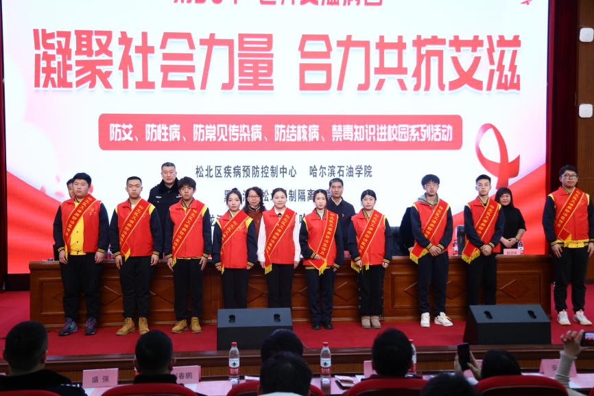 启动仪式上,松北区疾病预防控制中心杨红霞副主任指出,艾滋病是一个复杂的社会问题,全社会要共同参与,动员社会各方力量凝心聚力,共同抗击艾滋病,特别是广大青年学生要养成健康的生活方式,从知、信、行三方面,树立“每个人是自己健康第一责任人”理念,提高防治意识和自我防护能力。