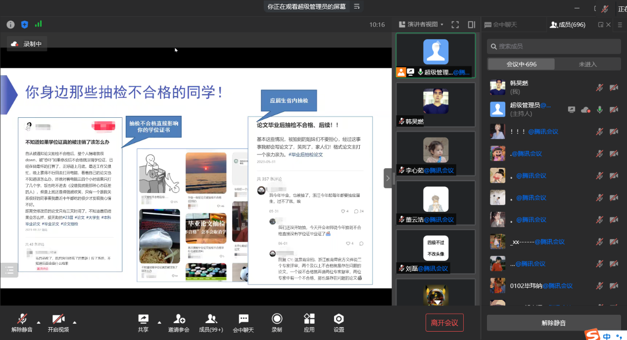 为了让同学们更直观的了解论文开题的全过程以及撰写论文的注意事项,讲座结束以后,在师生互动环节中,肖丹老师对参会学生提出的相关问题一一进行解答。