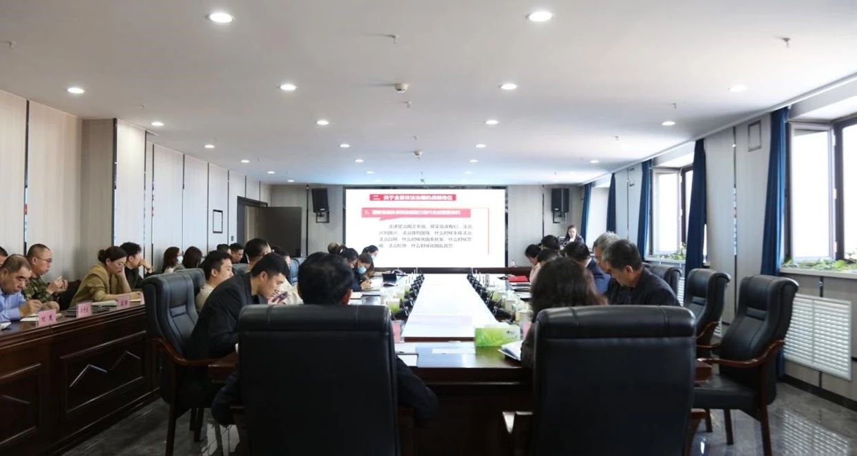 沃金雁教授以“学习贯彻习近平法治思想 坚持全面依法治国”为题,结合习近平总书记在中央全面依法治国工作会议上提出“十一个坚持”的重要内容,从全面依法治国的政治方向、战略地位、工作布局、主要任务、重大关系及重要保障共六个方面进行了深入浅出的讲解。与会人员进一步增强法律意识,强化法治思维,对运用法治思维开展工作凝聚共识。