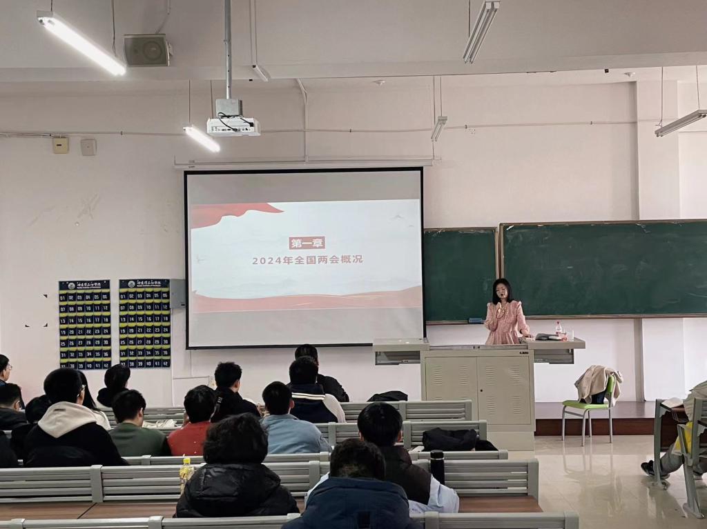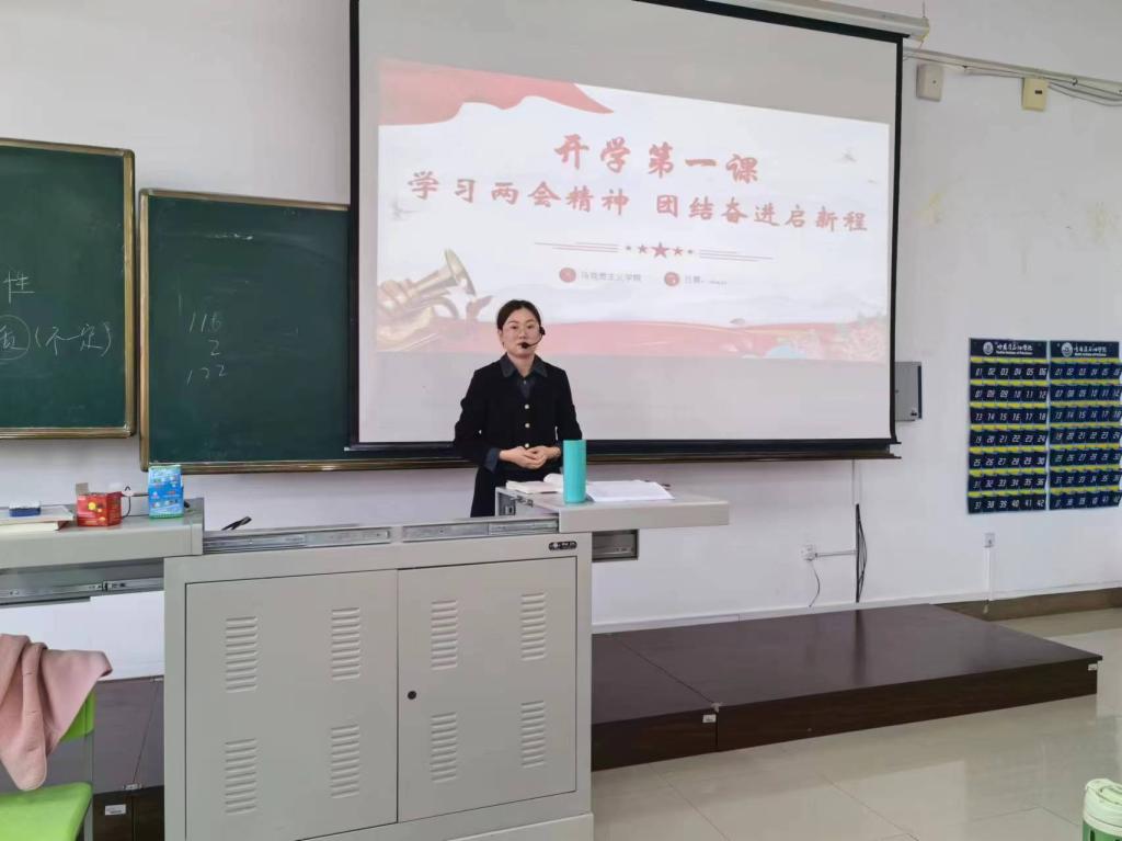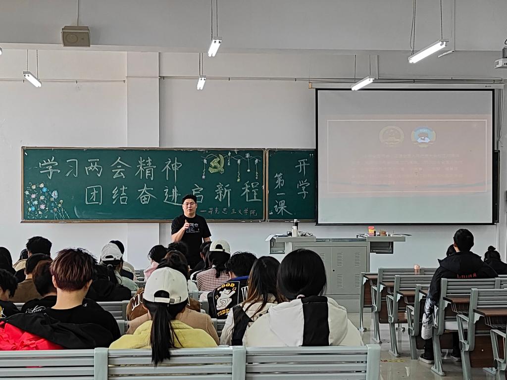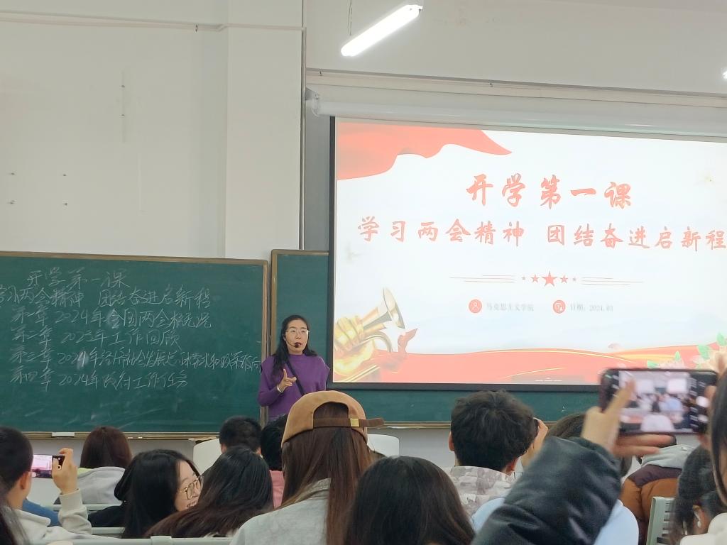 新学期初,马克思主义学院组织开展“学习两会精神,团结奋进启新程——开学第一课”专题教育活动。全体思政课教师结合课程内容和学生实际,面向学生深入开展2024年全国两会精神宣讲,不断推动党的创新理论入脑入心。