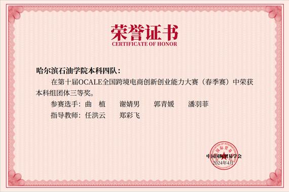 4月27日,由中国国际贸易学会举办的第十届OCALE全国跨境电商创新创业能力大赛(春季赛)顺利结束,伟德官网学子凭借出色的表现,荣获本科组团体三等奖。