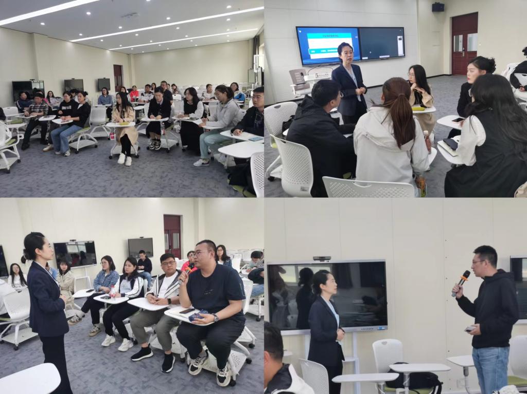 随后,王老师运用对分课堂中“当堂对分”的模式,从“对分课堂”学习设计、对分理念、对分流程、讨论吸收和对话环节等方面介绍了“对分课堂”的核心理念和思想,阐明对分课堂是更科学规范的教学模式,并讲授了对分课堂的操作流程“讲授,独学,讨论,对话”每一个环节背后的重要意义,及四个环节的具体操作方法。