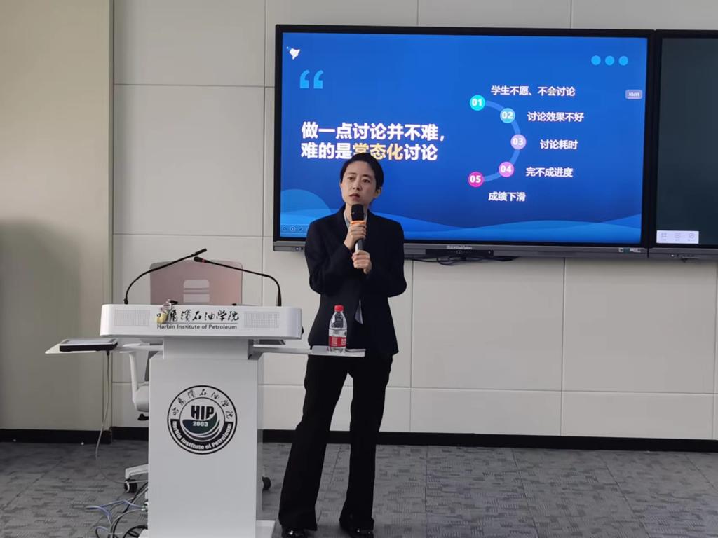 5月28日下午,伟德官网在第一教学楼210智慧教室,举办了“对分课堂”微型工作坊,石油工程学院王瑞副教授主讲,各教学单位近三年入职教师参加了本次工作坊,教师教学发展中心主任李洪华主持本次活动。
