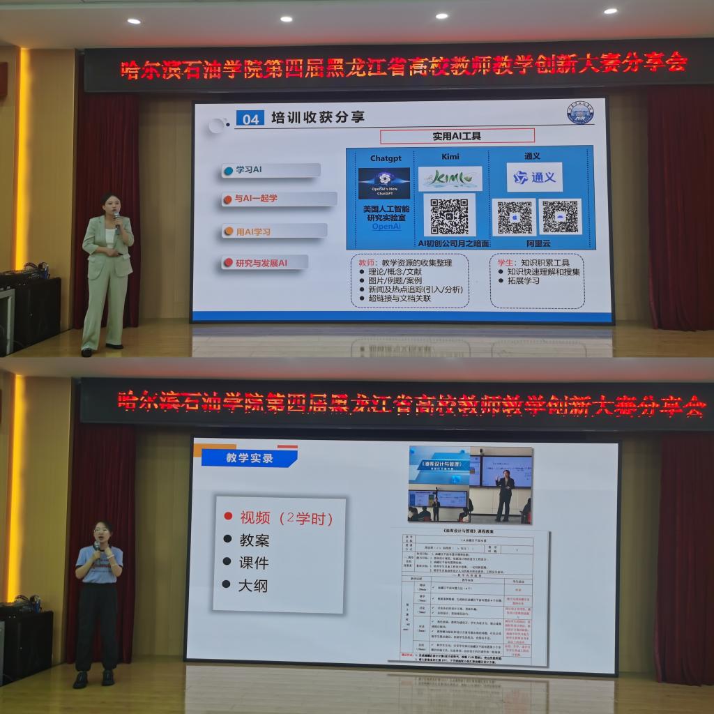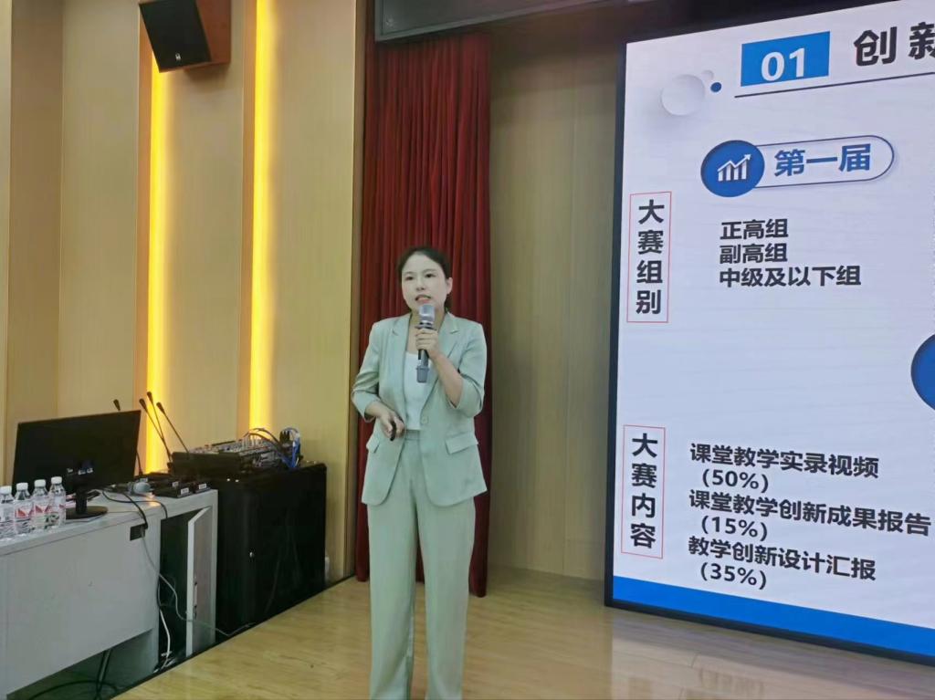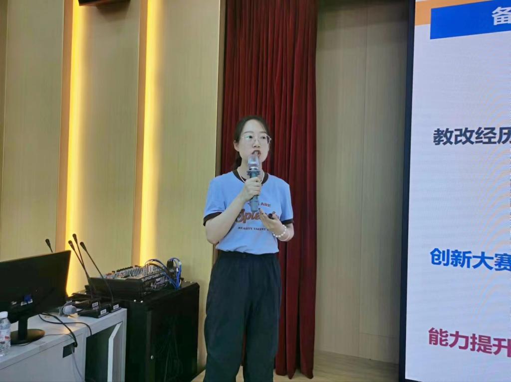 随后,荣获工科中级及以下组三等奖的叶雪老师代表团队进行了分享,她以《油库设计与管理》为例分别从备赛和参赛的经历向老师们做了认真细致的分享。她讲述了在备赛过程中的教改经历,从初识创新大赛到自己参加大赛的收获和喜悦,并重点分享了教学实录录制的注意事项、创新报告的撰写方法等。她表示,比赛真正的驱动力不是荣誉或利益,而是源于热爱,源于对学生的热爱,对教学的热爱。坚持做好一件事,结果自然水到渠成。