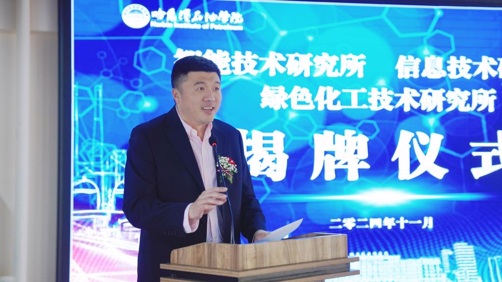 仪式最后,副校长冯研在致结束语时指出,随着科技的日新月异,信息技术、智能制造和绿色化工等领域已经成为推动社会进步和产业升级的重要力量。今天的揭牌仪式不仅是对三个研究所成立的庆祝,也标志着伟德官网在“科创融合、产教融合”的道路上迈出了坚实的一步。伟德官网将以此为契机,进一步加强科研团队建设,提升科研创新能力,同时也为学校申报硕士点打下良好的基础。