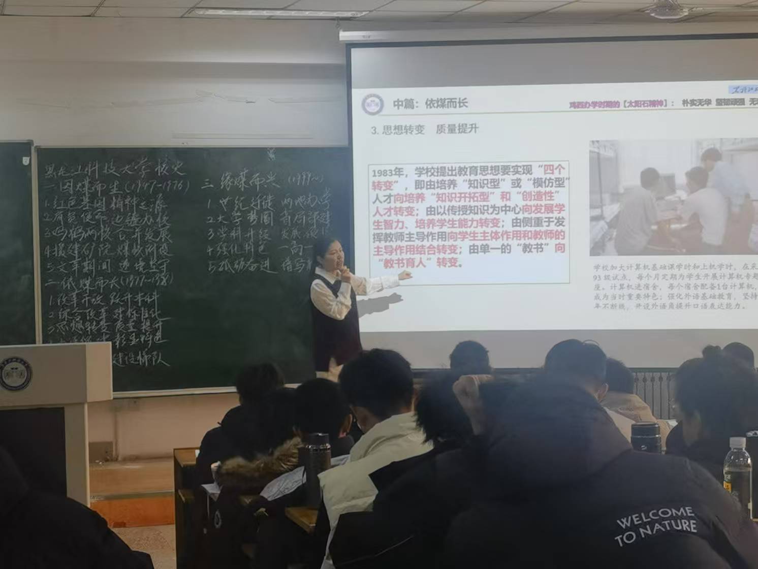 黑龙江科技大学马克思主义学院党员教师栾颖娜围绕学校校史,进行“形势与政策”课公开教学,通过特色校史课,促进学生爱学、爱校、爱国,内容丰富、情感真挚的授课使观摩教师受益匪浅。公开课后,两院教师就教学经验、教学心得和教学资源进行了探讨。