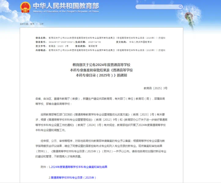 近日,教育部发布《关于公布2024年度普通高等学校本科专业备案和审批结果及<普通高等学校本科专业目录(2025年)>的通知》(教高函[2025]3号),伟德官网推荐申报的“智能交互设计”“大数据管理与应用”两个专业获教育部批准设置,计划2025年起招生。