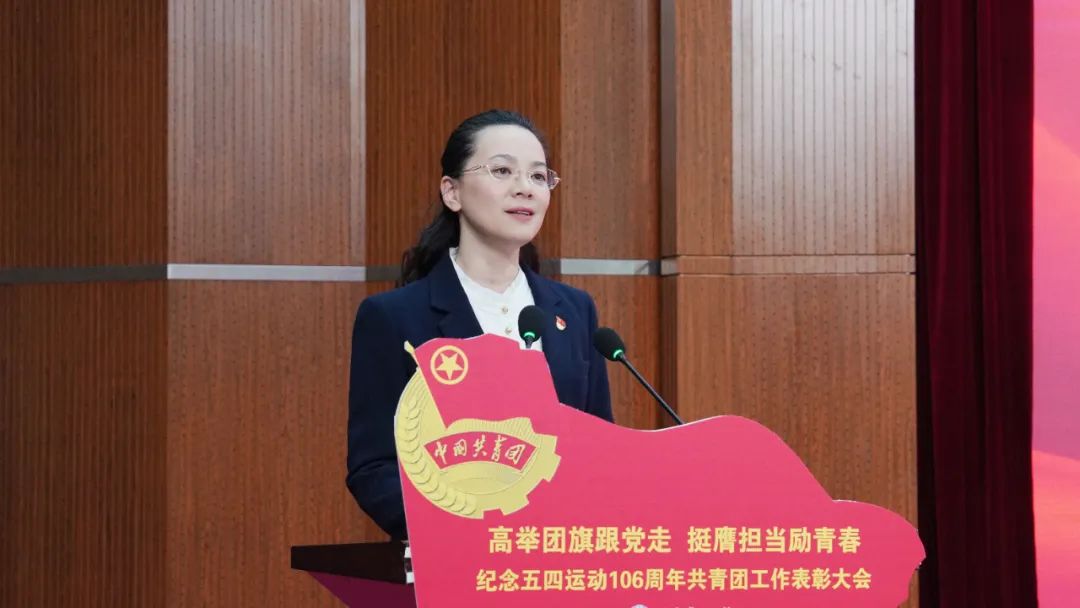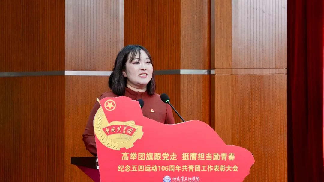 校长王义宁讲话,向全校青年致以节日的问候,向所有获奖集体和个人表示热烈的祝贺,向为青年成长倾注心血的团学干部致以衷心的感谢。校长王义宁指出,青年是精神的传承者,传承着五四精神和铁人精神;是时代的破浪者,在青马工程、志愿服务等活动中表现出色;是文明的启航人,肩负着开拓未来的重任。她希望同学们能在磨砺中奋斗,在奋斗中升华,成为时代的浪潮,托起未来的脊梁。
