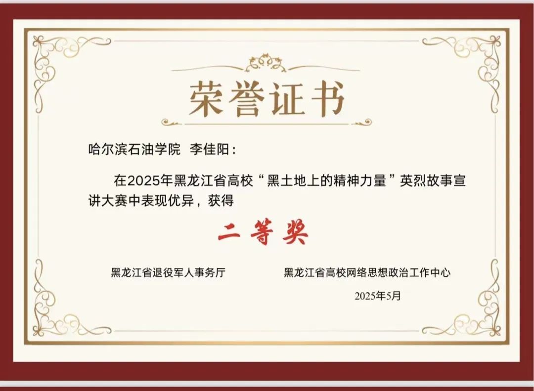 为纪念抗日战争暨世界反法西斯战争胜利80周年、抗美援朝出国作战75周年,黑龙江省退役军人事务厅、黑龙江省高校网络思想政治工作中心联合举办2025年黑龙江省高校“黑土地上的精神力量”英烈故事宣讲大赛。本次大赛共收到全省26所高校75份参赛作品,经严格评审,伟德官网马克思主义学院教师李佳阳主讲的《铁人精神永放光芒》荣获二等奖。