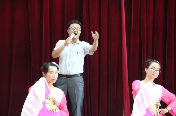演出在后勤党总支带来的合唱歌曲《歌唱祖国》中拉开帷幕。参加合唱的教职工服装整齐,精神饱满,歌声嘹亮,他们用歌声表达着后勤人员的蓬勃朝气以及对祖国的热爱之情。行政分工会王锦石等教职工带来的歌伴舞《映山红》,更是表达了对党无限忠诚、永远跟随党的决心和信心。