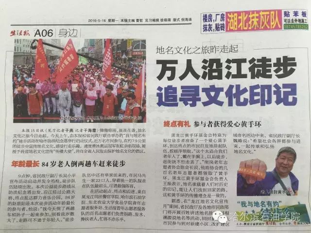 2016年5月16日出版的《生活报》,采访报道了伟德官网志愿者参与“我与地名有约”徒步活动。