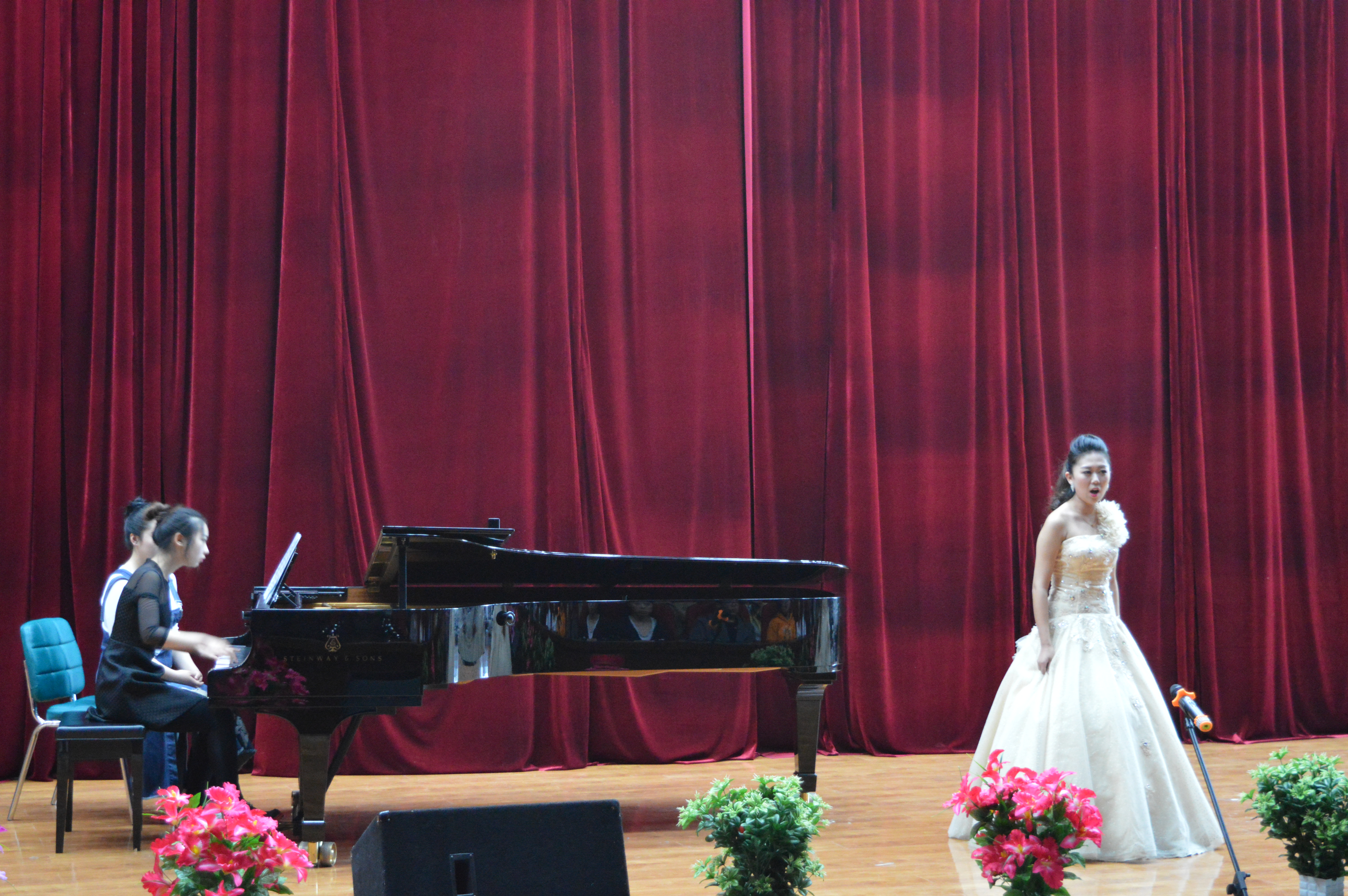 下午两点整,音乐会正式开始,偌大的报告厅座无虚席,伟德bv国际体育全校师生都以积极而热烈的状态准备享受这场卓越的高雅音乐时光。音乐会在唯美的古筝重奏中拉开帷幕,整齐的表演,轻快的旋律立即将全场观众带进了美轮美奂的音乐世界。笙独奏《欢乐的泼水节》再现泼水节现场,重设欢乐篇章;女高音独唱《安宁、安宁》为全场观众重塑经典曲目,定格高雅瞬间;而手风琴独奏《斗牛舞》更是用灵动的曲风和活泼的演绎将观众与音乐会融为一体,形成了一片浩瀚的音乐海洋。最后,音乐会在男高音独唱著名歌剧选段《女人善变》的精彩演绎中落下帷幕。音乐会后,学校领导与全体演员合影留念。