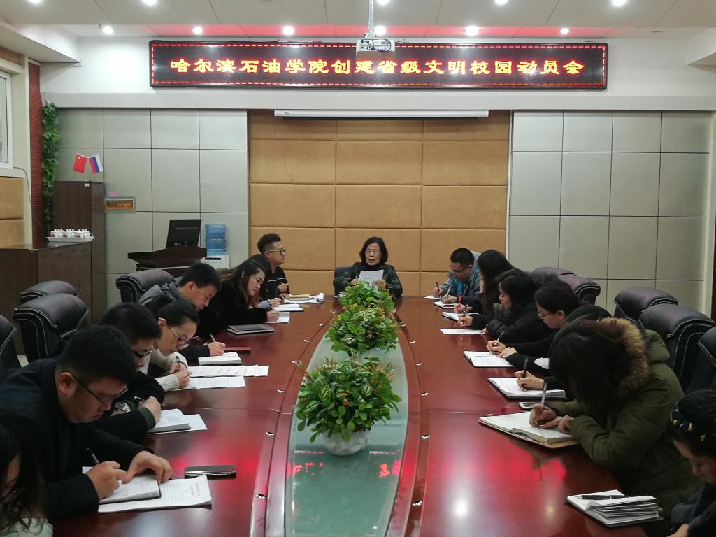 会上,宣读了《黑龙江省高校文明校园评选考核工作实施细则》及《伟德bv国际体育参评黑龙江省高校文明校园评选标准及评分细则》。