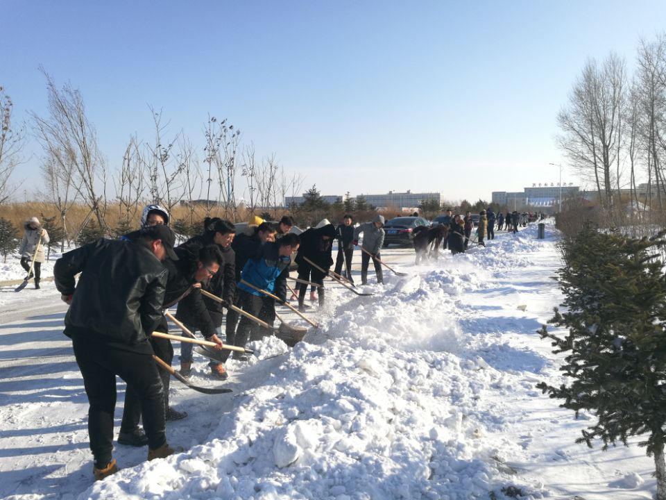 连日来的持续降雪,校园内的道路覆盖了厚厚的积雪。开学在即,为了保证学生出行安全,2018年3月4日,学校组织全体教职工集体清雪除冰,确保校园内道路行驶安全畅通。