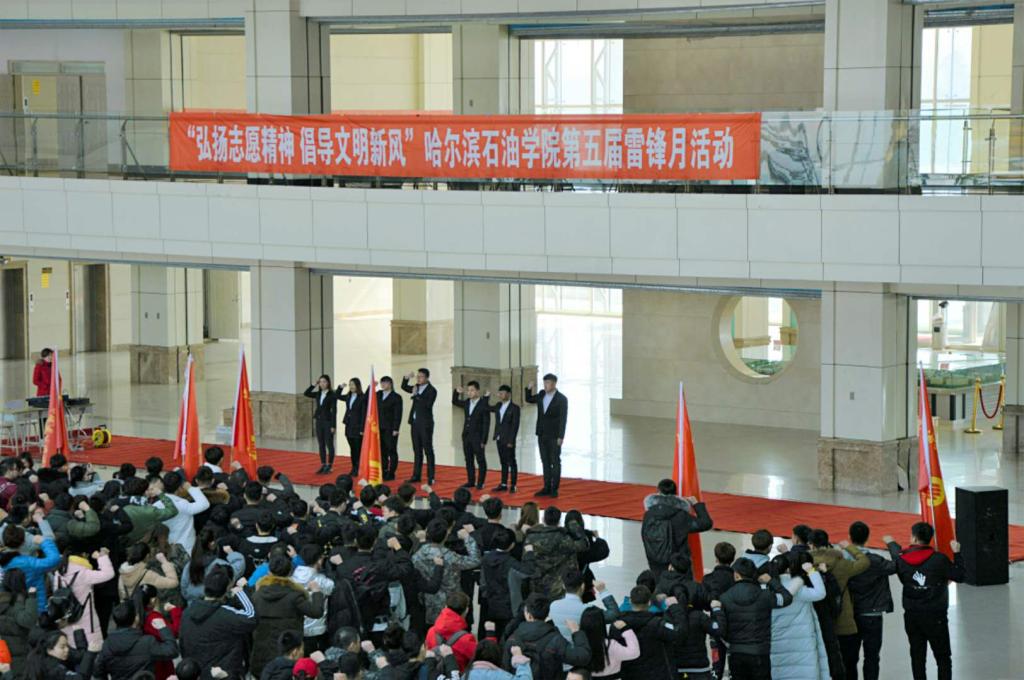 为贯彻落实中共中央办公厅《关于深入开展学雷锋活动的意见》,推动学雷锋活动常态化,广泛深入开展学雷锋志愿服务主题活动,以传承和弘扬雷锋精神为主题,以青年大学生为重点,以社会志愿服务活动为载体,扎实有效开展学雷锋志愿服务主题活动,通过一系列活动满足伟德官网学生精神文化需求,促进伟德官网学生对公益志愿服务的有效开展,2018年3月5日中午12:00在主教阳光大厅举行了伟德bv国际体育第五届学雷锋志愿服务活动月启动仪式。校团委书记王锦石、校团委副书记彭雷,校团委干事冯海龙和各二级学院团总支书记以及各志愿者服务队参加了此次启动活动。