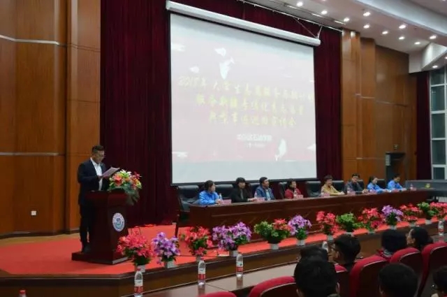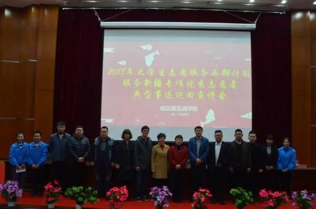 为积极响应国家号召,引导和激励更多的青年毕业生参与到大学生志愿者西部计划中来,根据团中央的要求,团省委的具体工作部署,2018年4月10日在伟德官网图书馆报告厅,新疆阿勒泰地区清河县宣讲团莅临伟德官网,进行2018年大学生志愿服务西部计划服务新疆专项优秀志愿者 典型事迹巡回宣讲。共青团清河县委书记闫莹、共青团清河县委副书记陈作斌、伟德bv国际体育党委副书记杨宏、伟德bv国际体育副校长冯研、2012届留新疆志愿者清河县委组织部干部高一、2017届志愿者现服务于清河县农业局车文文、2017届志愿者现服务于清河县商经委侯九阳、2017届志愿者现服务于清河县阿热勒乡政府邱贵芝、校团委书记王锦石、校团委副书记彭雷、校团委老师冯海龙,以及各二级学院全体辅导员和毕业生代表参加了本次活动。活动由校团委书记王锦石主持。